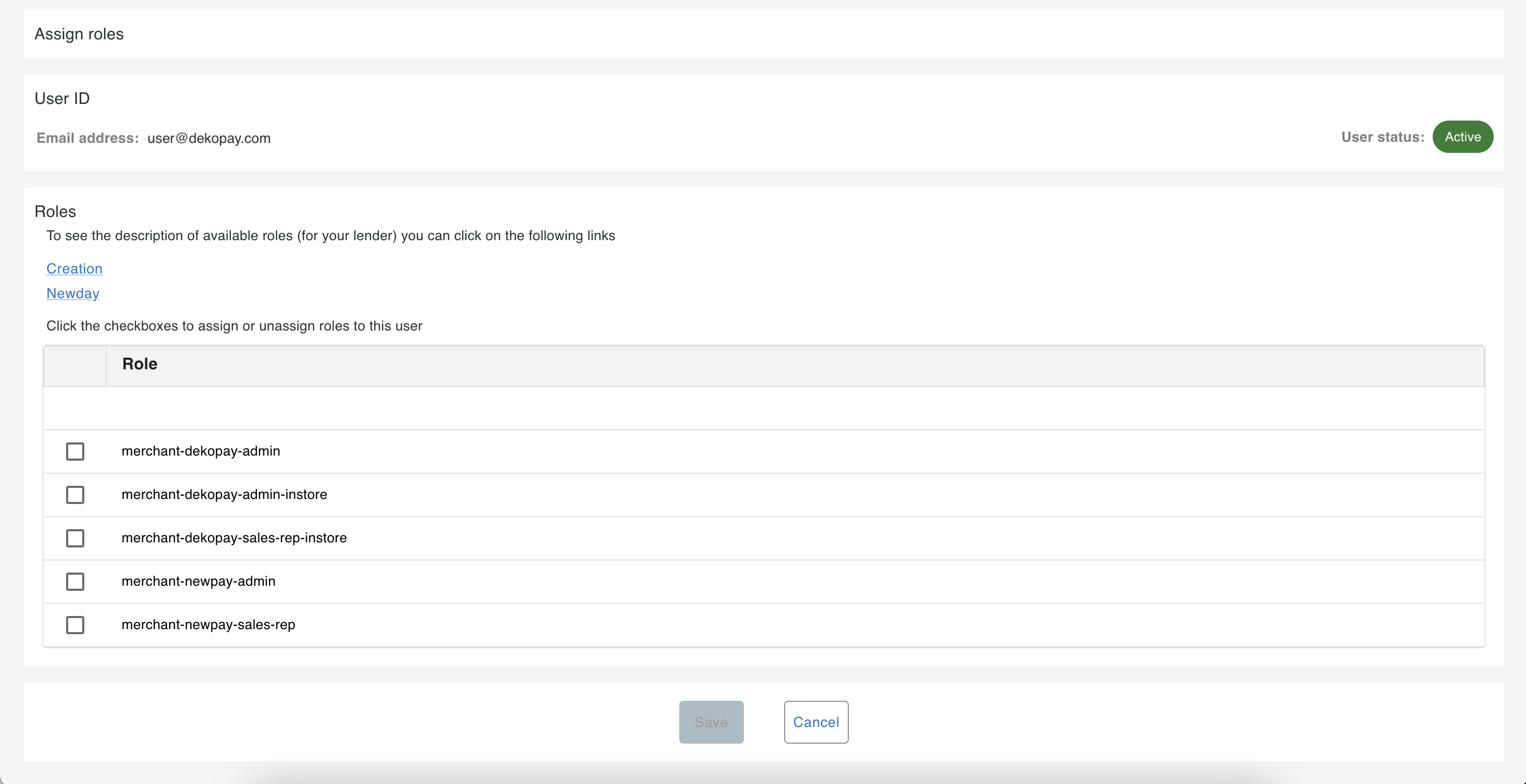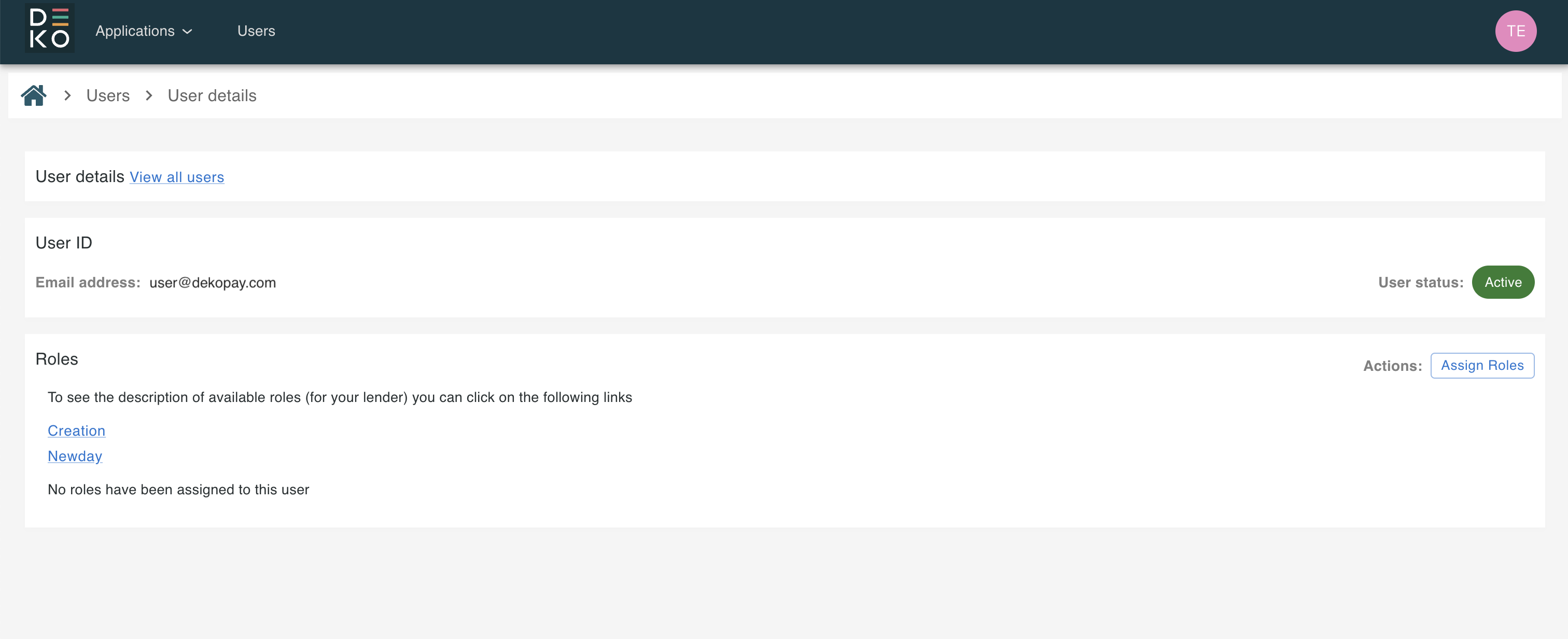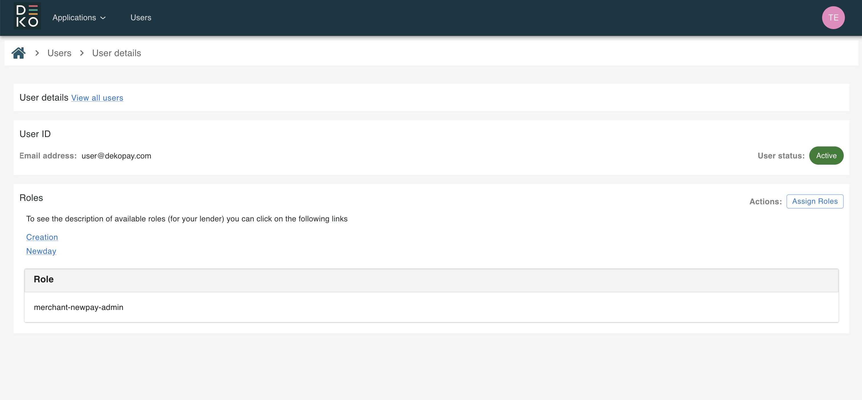 Assigning roles to users can be managed from the User Management section in the Deko Dashboard.